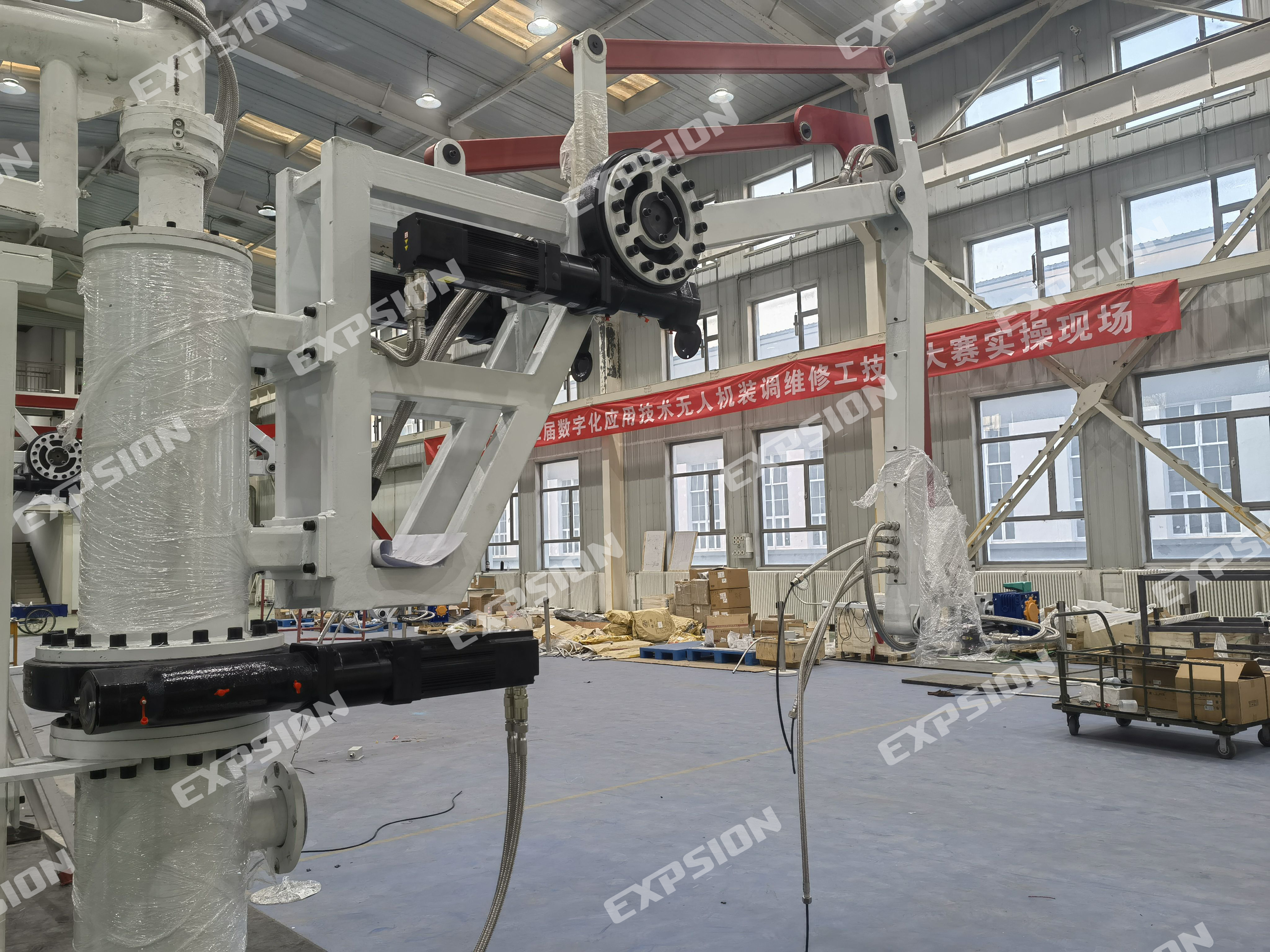 石油鹤管输送设备,之前使用手动调节,现在用防爆伺服电机来进行控制鹤管的升降以及换向