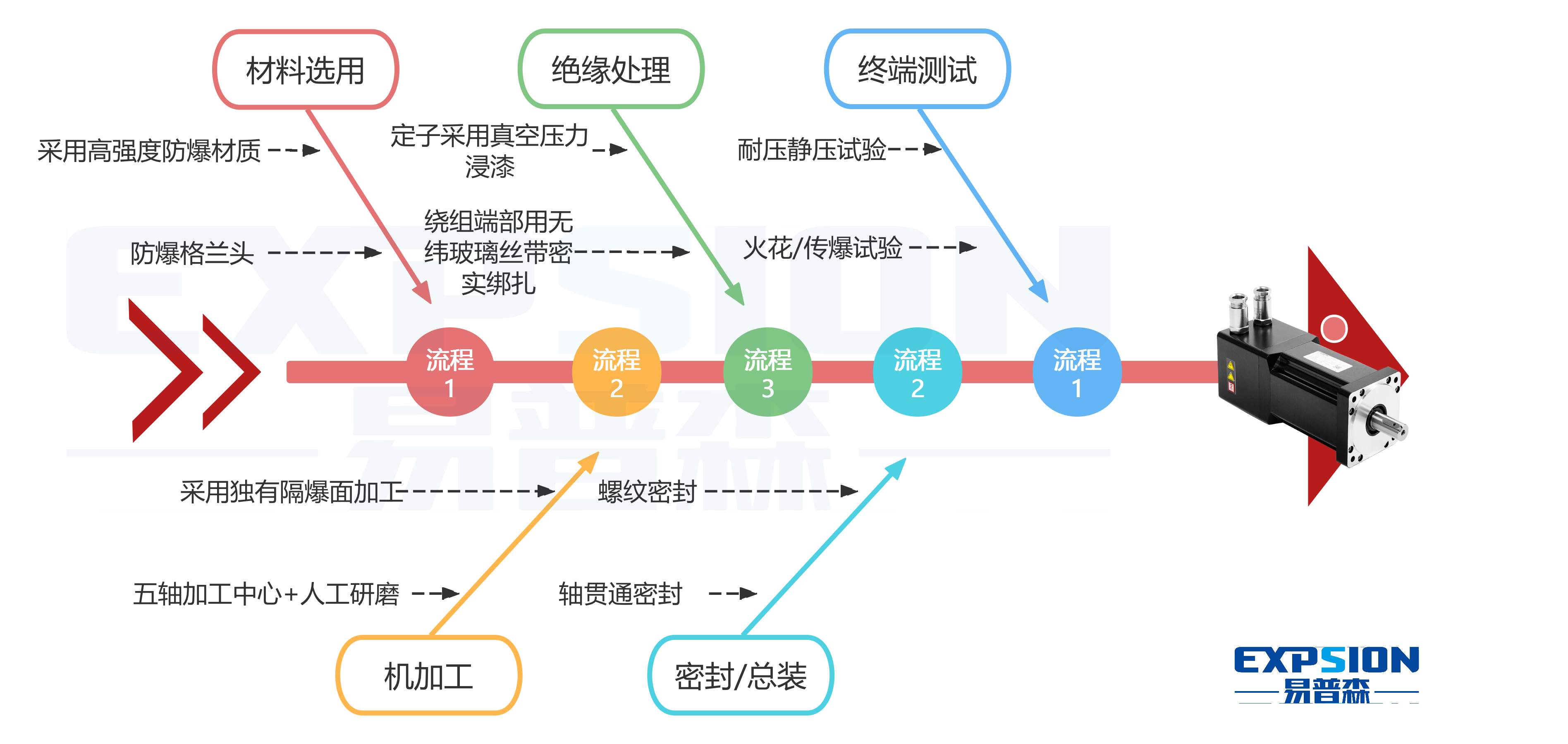 易普森防爆伺服电机的工艺流程包含了下面这些流程: